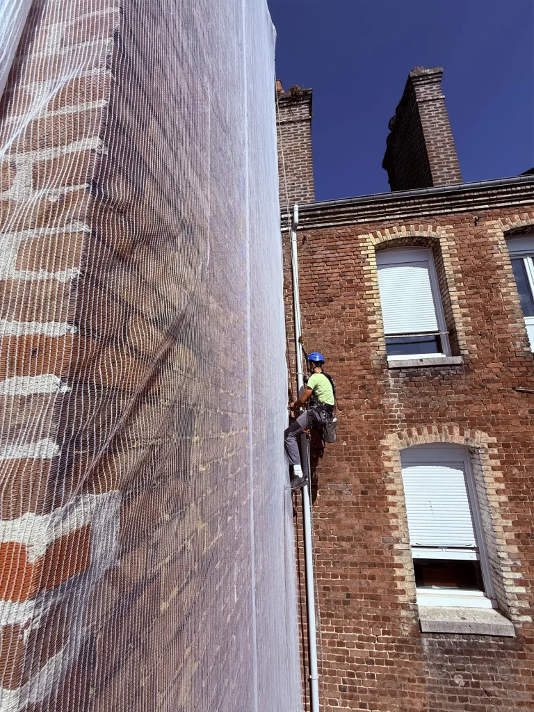 Expertise en pose de filets de sécurité et bâches de protection. Que ce soit pour la protection collective sur chantier ou pour vos besoins événementiels, nos cordistes assurent une installation rigoureuse et conforme.